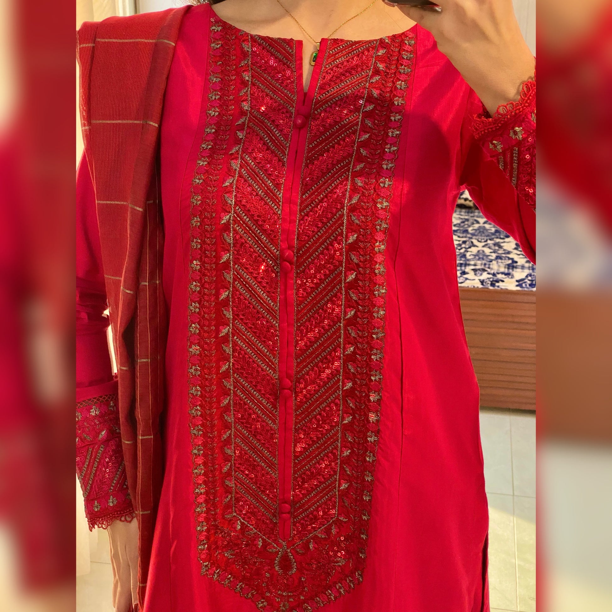"Make a refined statement in this elegantly embroidered three-piece suit β where heritage meets modern sophistication"
