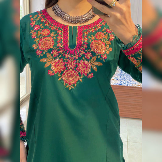 20% OFFDusty-Teal Blue Embroidered 3PC
